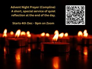 Join us for a short, special service of quiet reflection at the end of the day – Thursdays during Advent 9pm on Zoom,